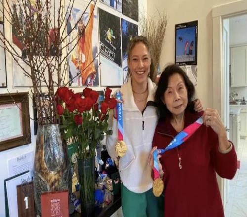 谷愛凌在贏得洛桑冬青奧的獎(jiǎng)牌之后,和外婆分享勝利喜悅