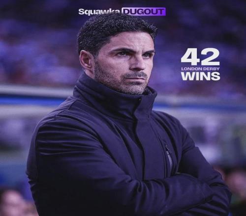 Squawka統(tǒng)計(jì),在執(zhí)教參加20場(chǎng)以上倫敦德比的教練中,阿爾特塔是勝率最高的:60.8%。